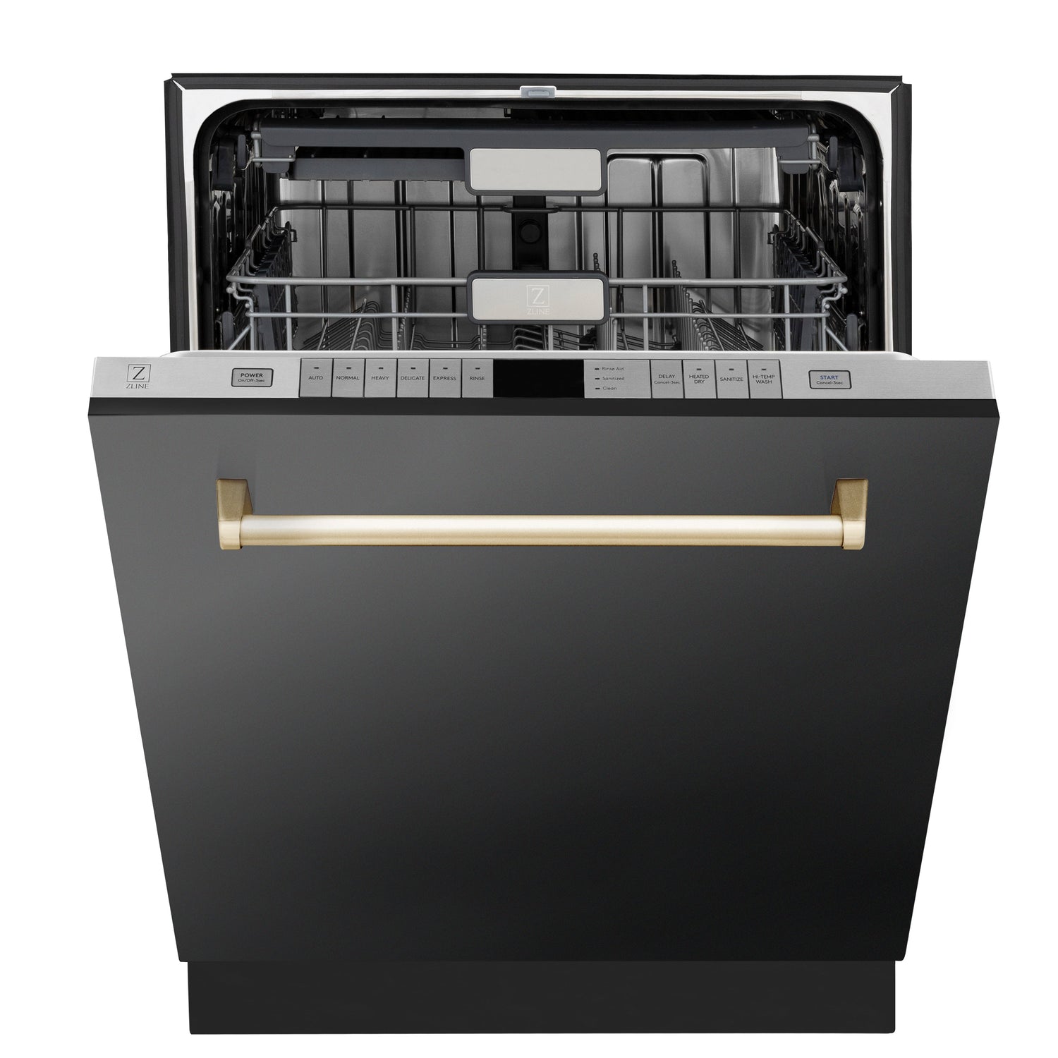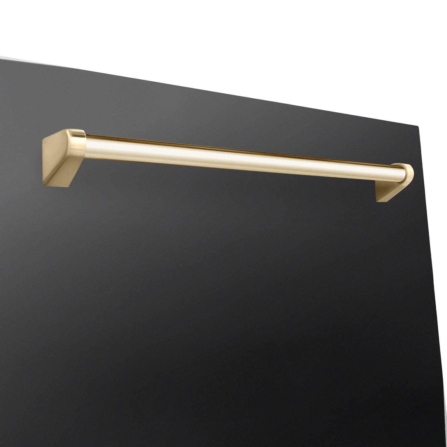 ZLINE Autograph Edition 24 in. 3rd Rack Top Touch Control Tall Tub Dishwasher in Black Stainless Steel with Polished Gold Handle, 45dBa (DWMTZ-BS-24-G)