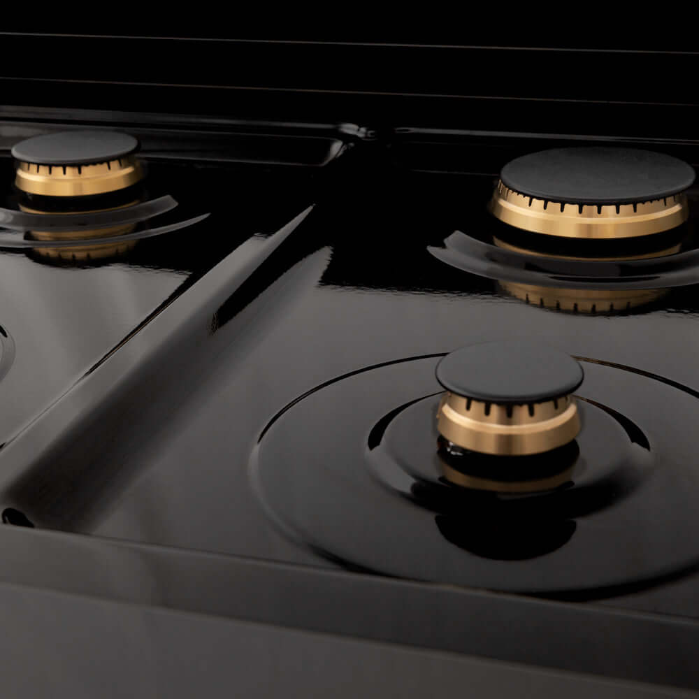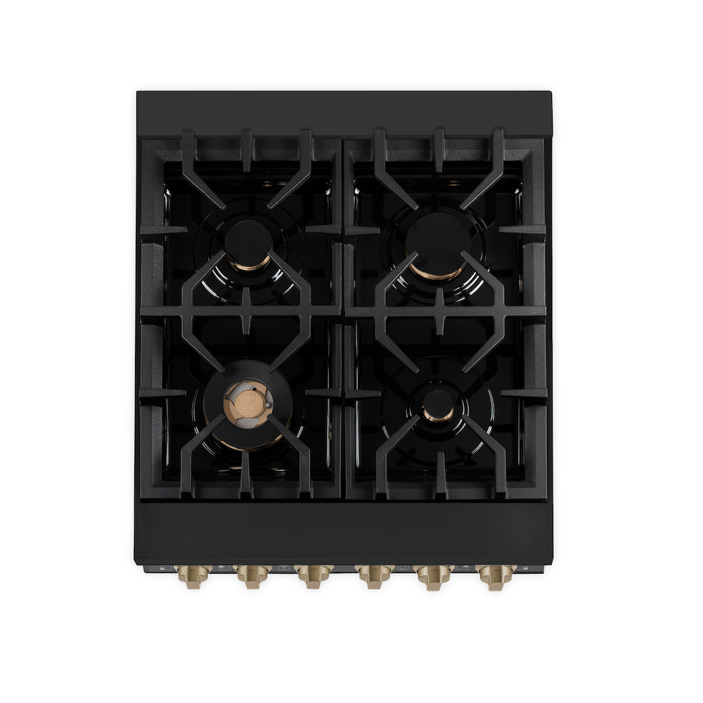ZLINE Autograph Edition 24 in. 2.8 cu. ft. Dual Fuel Range with Gas Stove and Electric Oven in Black Stainless Steel with Champagne Bronze Accents (RABZ-24-CB)