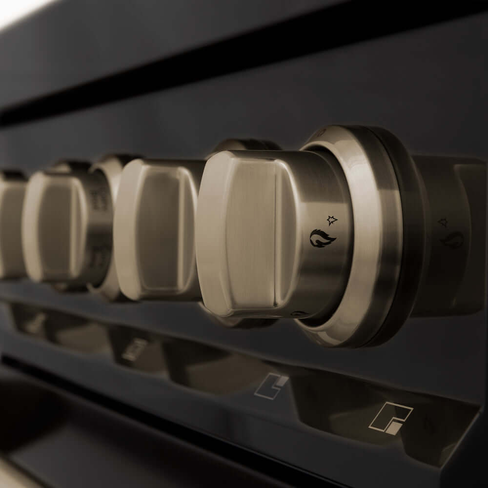 - Autograph Edition Series - Enjoy a timeless look in your kitchen with a Black Stainless Steel finish paired with Champagne Bronze accent knobs and handles, giving your kitchen an elegant, unmatched style
