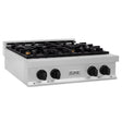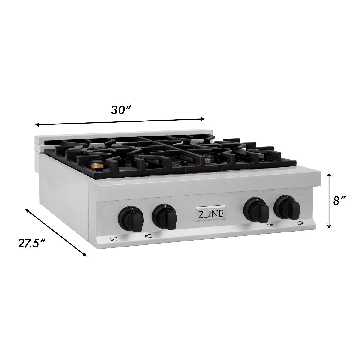 ZLINE Autograph Edition 30 in. Porcelain Rangetop with 4 Gas Burners in DuraSnow® Stainless Steel with Matte Black Accents (RTSZ-30-MB)