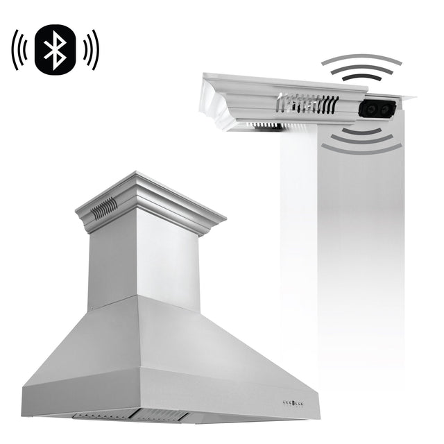 ZLINE Ducted Vent Wall Mount Range Hood in Stainless Steel with Built-in ZLINE CrownSound Bluetooth Speakers (667CRN-BT)