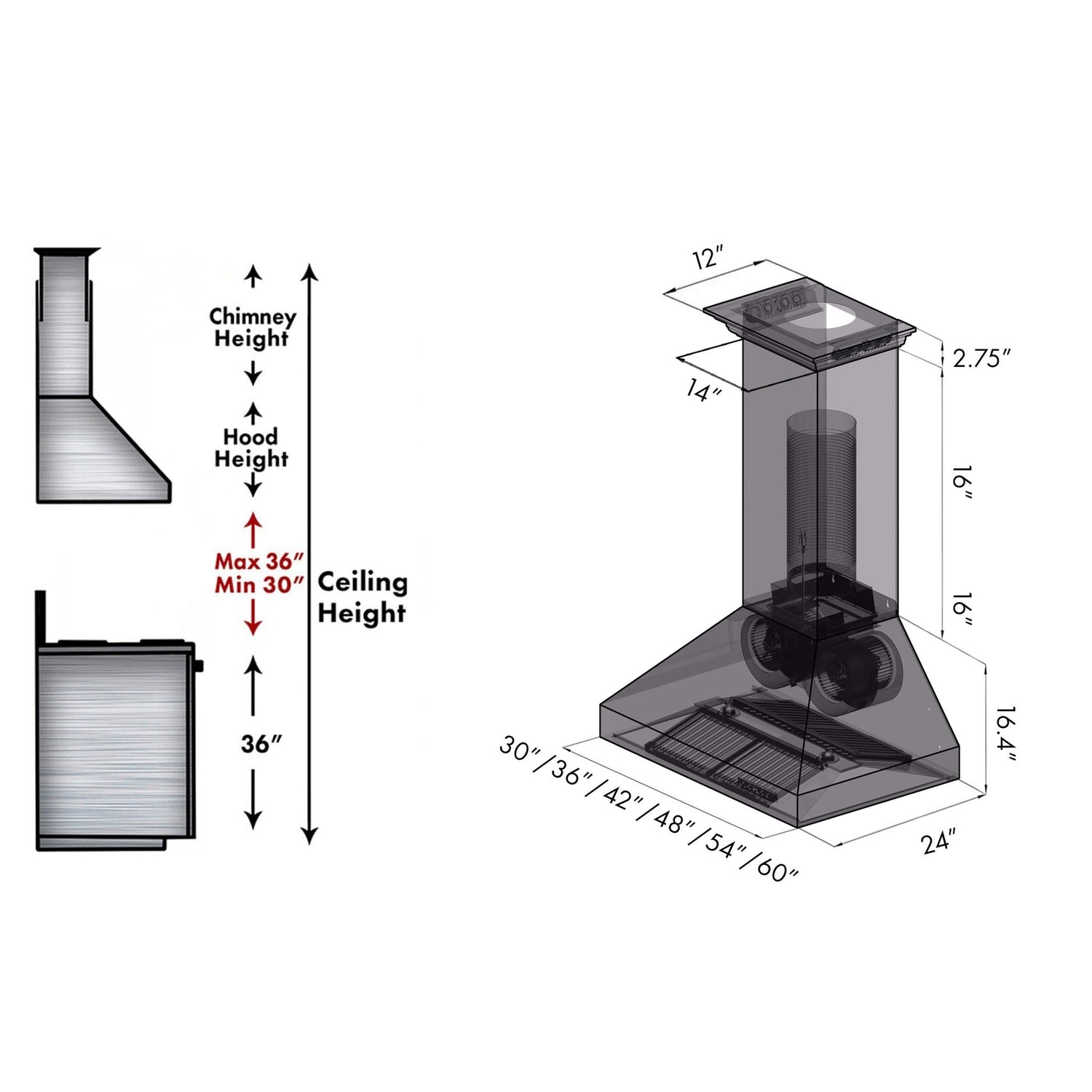 The ZLINE Wall Mount Range Hood with Built-in ZLINE CrownSound Bluetooth Speakers transforms the seamless, elegant ceiling transition of ZLINE Range Hoods into a high-fidelity, wireless sound system, creating the perfect entertainment area for you and your guests. With ZLINE CrownSound, you can pair your smart device up to 50 feet away for optimal access and control of audio in your kitchen. The high-performance, 4-speed motor provides all the power you need to quietly and efficiently ventilate your kitchen while hosting kitchen dance parties or listening to your favorite podcasts. With its classic 430-grade stainless steel, this range hood contains rust, temperature, and corrosion-resistant properties to ensure a durable vent hood that will last for years to come. Enjoy modern features, including built-in LED lighting for an illuminated culinary experience and dishwasher-safe stainless steel baffle filters for easy clean-up. This wall mount mount range hood has a ducted vent with easy, simple installation. Achieve a functional, modern upgrade that is perfectly harmonized with your favorite ZLINE Range Hood designs. ZLINE continues to revolutionize the industry by providing our customers with ZLINE Attainable Luxury. ZLINE proudly stands by the longevity and durability of their range hoods alongside its 3-year manufacturer parts warranty.