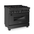 ZLINE 36 in. 4.6 cu. ft. Dual Fuel Range with Gas Stove and Electric Oven in Black Stainless Steel with Brass Burners (RAB-BR-36)