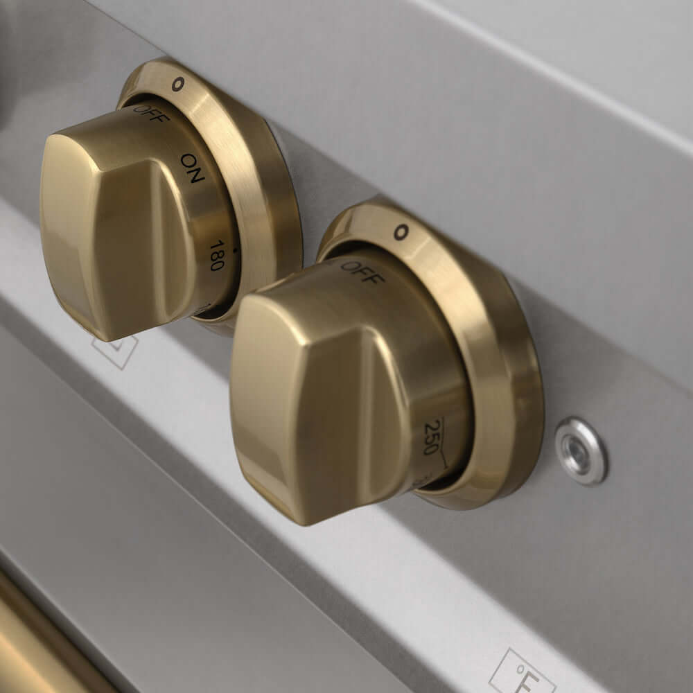 • Autograph Edition Series - Enjoy a timeless look in your kitchen with a DuraSnow® Stainless Steel finish paired with Champagne Bronze accent knobs and handles, giving your kitchen an elegant, unmatched style