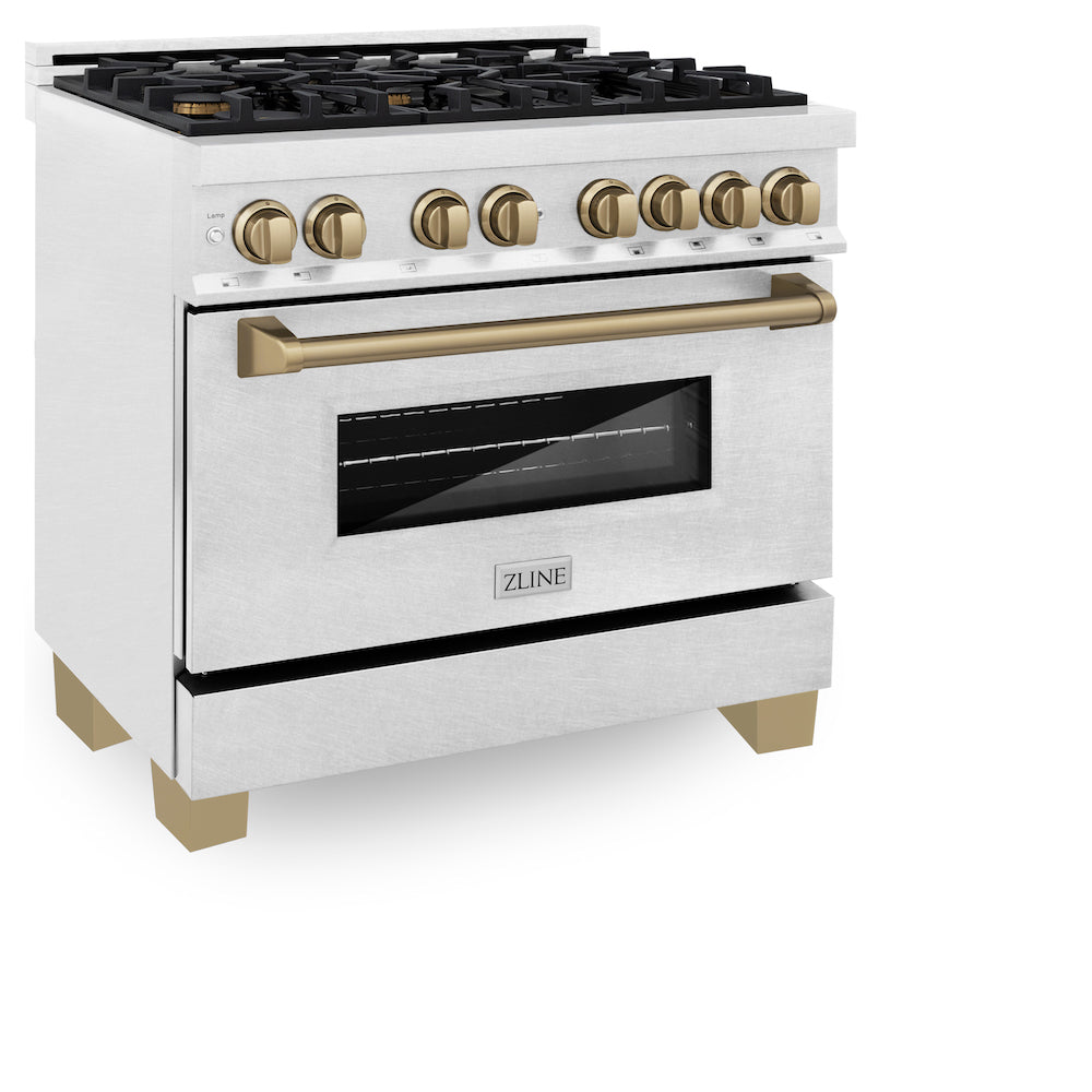 Luxury isn’t meant to be desired - it’s meant to be attainable. Designed in Lake Tahoe, USA, the ZLINE Autograph Edition 36" 4.6 cu. ft. Dual Fuel Range with Gas Stove and Electric Oven in DuraSnow® Fingerprint Resistant Stainless Steel with Champagne Bronze Accents (RASZ-SN-36-CB) provides a professional culinary experience by pairing unmatched performance with personalized touches. Encompassing limitless beauty, precision, and quality, the Autograph Edition Series creates a luxury look that will transform your space. Achieve ZLINE Attainable Luxury® excellence with innovative features designed to enhance your kitchen’s capability.