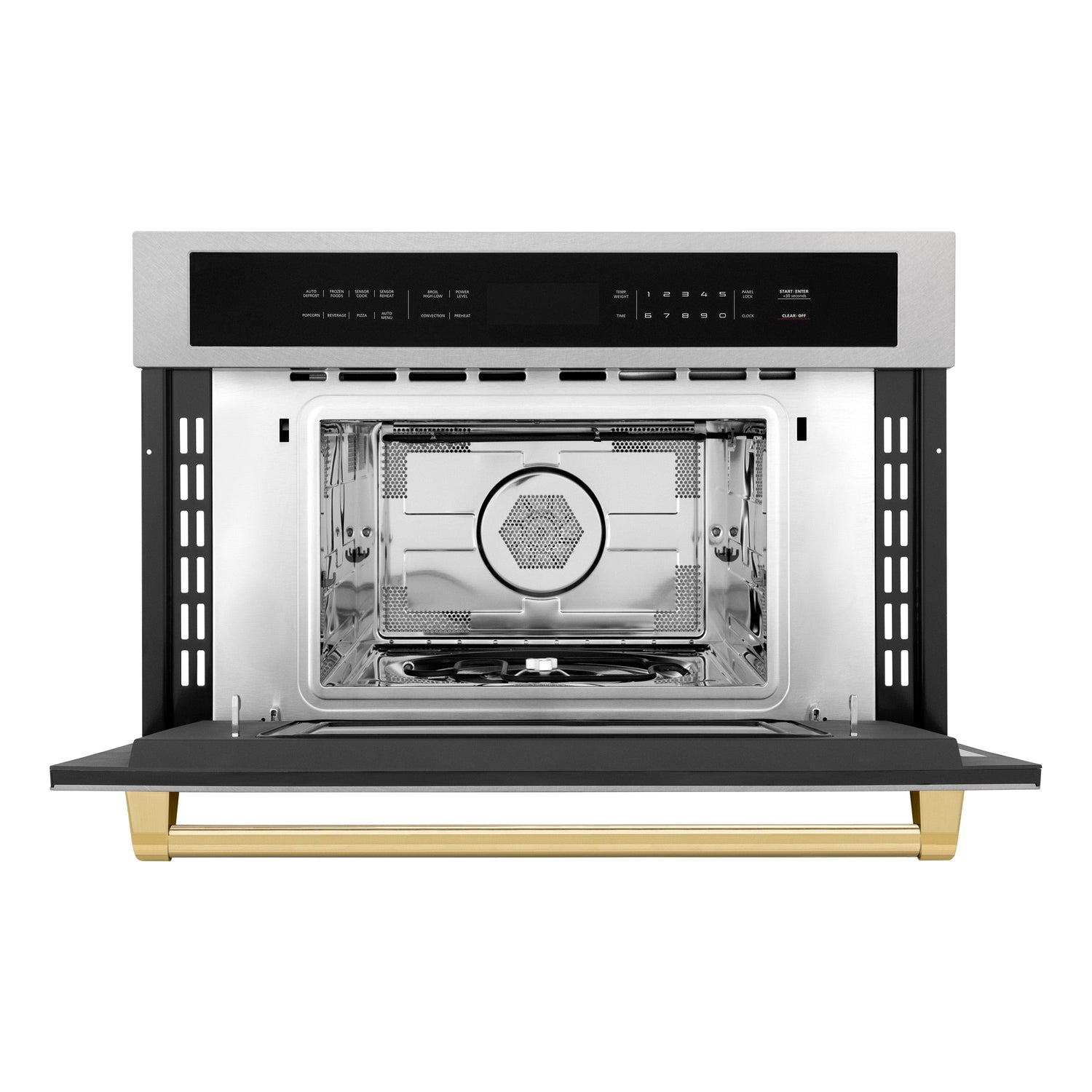 ZLINE Autograph Edition 30 in. 1.6 cu ft. Built-in Convection Microwave Oven in Fingerprint Resistant Stainless Steel with Polished Gold Accents (MWOZ-30-SS-G)