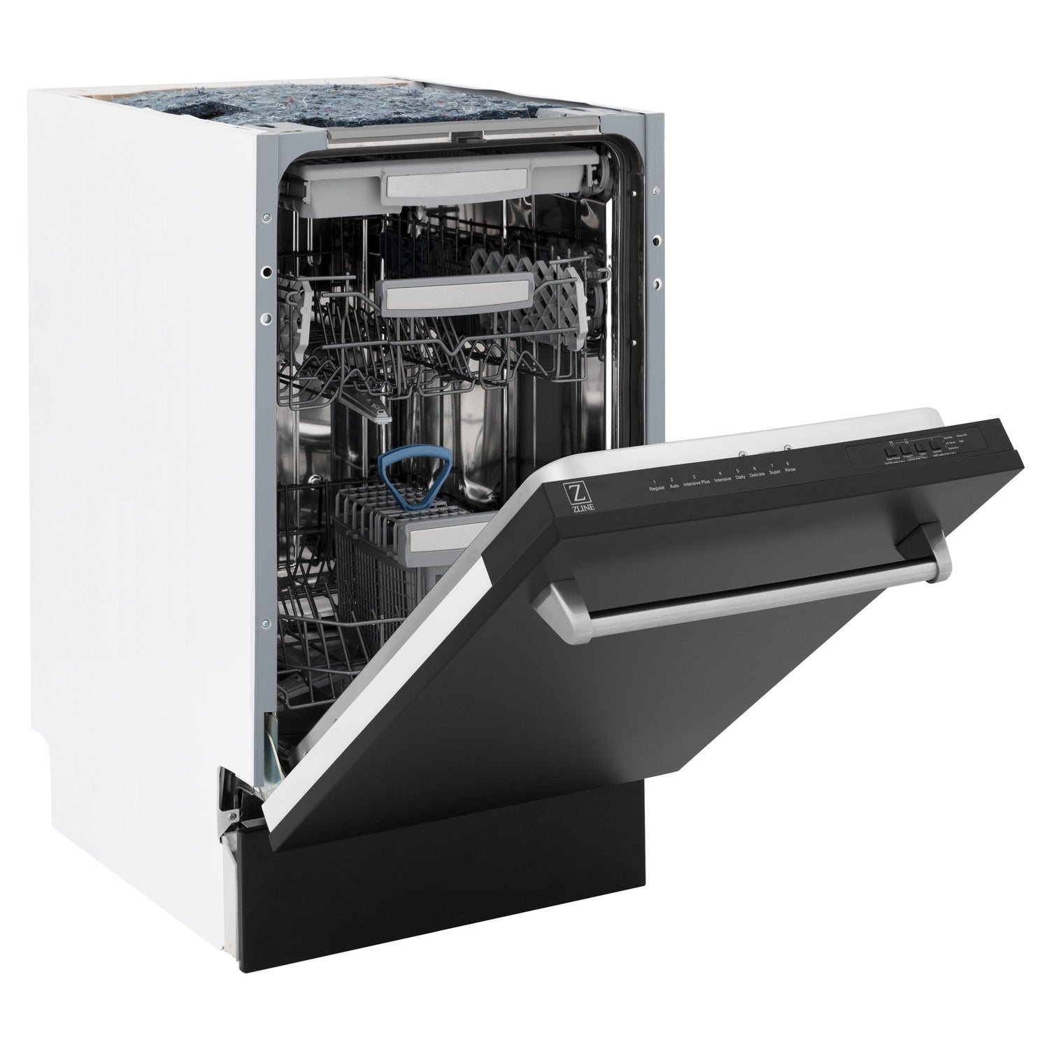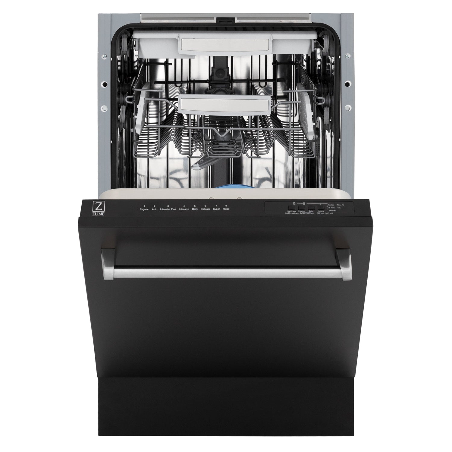 ZLINE 18 in. Tallac Series 3rd Rack Top Control Dishwasher with a Stainless Steel Tub with Black Matte Panel, 51dBa (DWV-BLM-18)