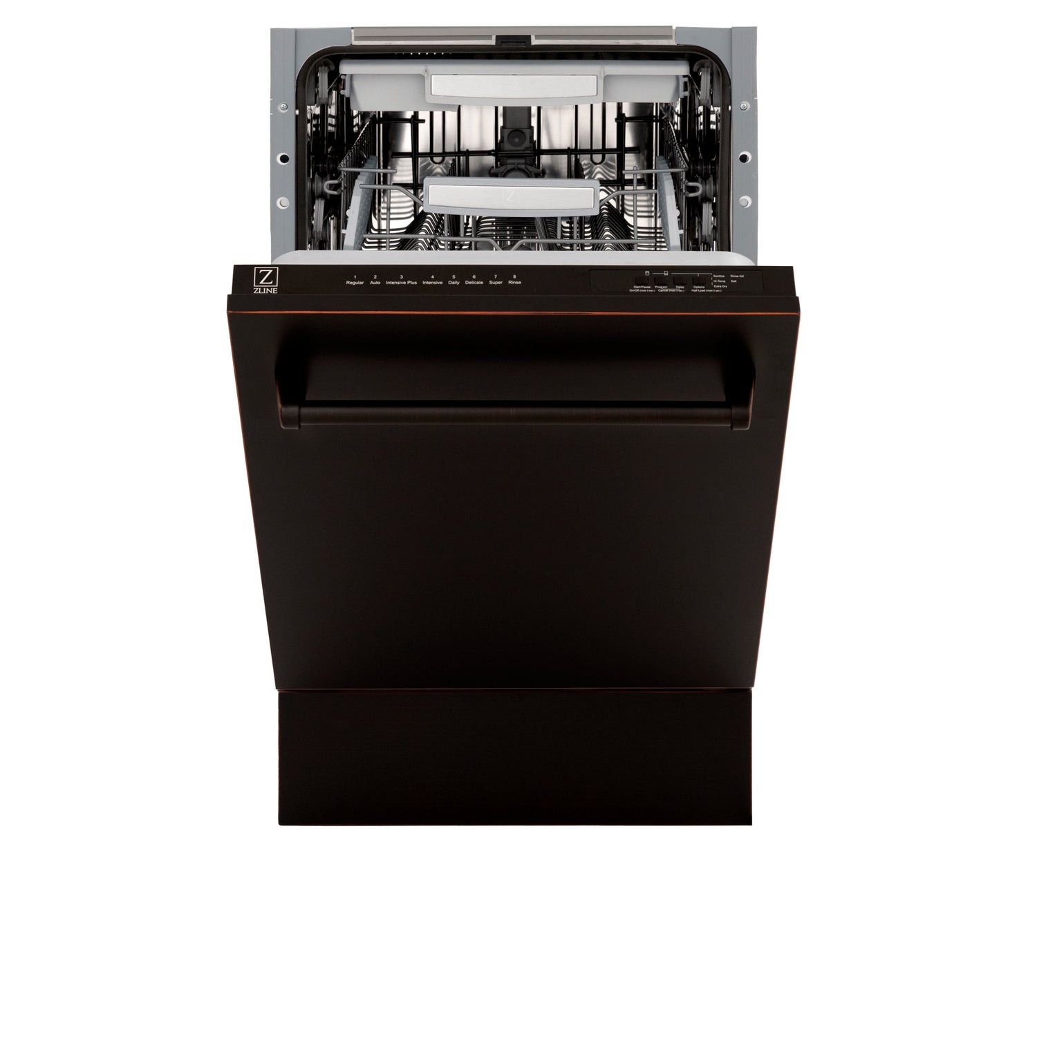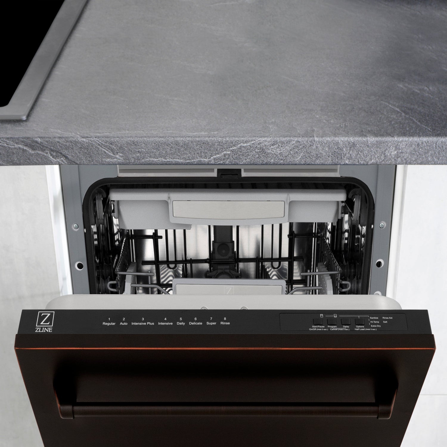 ZLINE 18 in. Tallac Series 3rd Rack Top Control Dishwasher in a Stainless Steel Tub with Oil-Rubbed Bronze Panel, 51dBa (DWV-ORB-18)