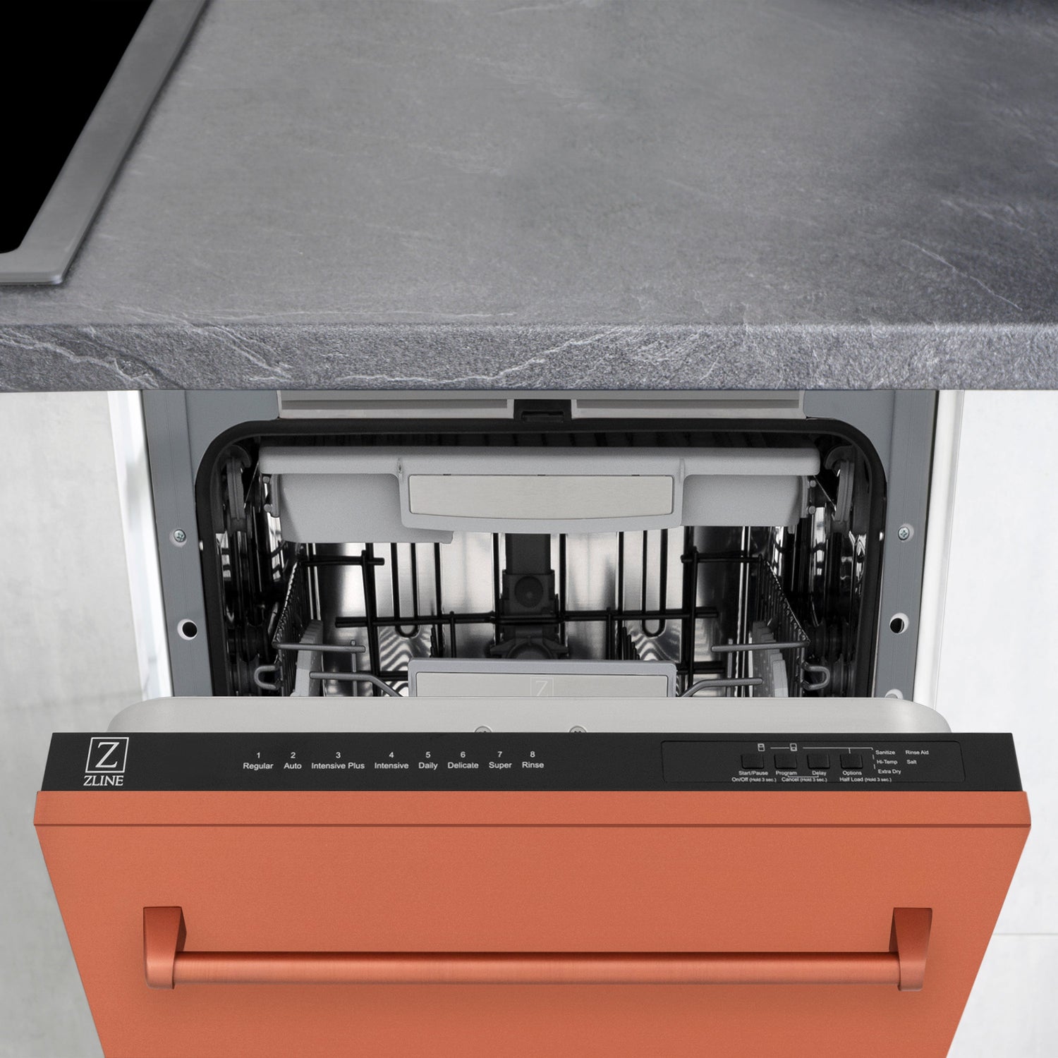 Luxury isn’t meant to be desired - it’s meant to be attainable. Designed in Lake Tahoe, USA, the ZLINE 18" Tallac Series 3rd Rack Top Control Dishwasher in Copper with Stainless Steel Tub, 51dBa (DWV-C-18) provides a professional culinary experience by pairing unmatched performance with timeless style. Achieve ZLINE Attainable Luxury® excellence with innovative features designed to enhance your kitchen’s capability.