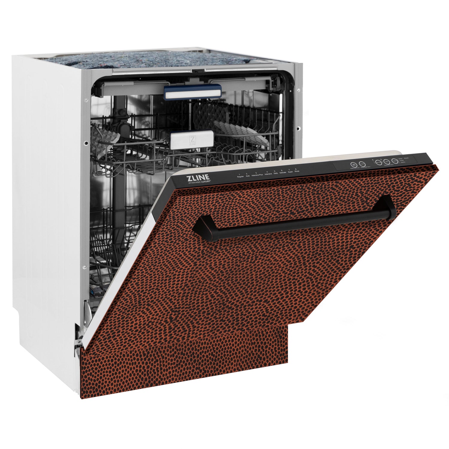 ZLINE 24" Tallac Series 3rd Rack Dishwasher with Hand-Hammered Copper Panel and Traditional Handle, 51dBa (DWV-HH-24)
