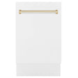 ZLINE Autograph Edition 18” Compact 3rd Rack Top Control Dishwasher in White Matte with Polished Gold Accent Handle, 51dBa (DWVZ-WM-18-G)