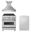 ZLINE 30 in. Kitchen Package with DuraSnow Stainless Dual Fuel Range, Ducted Vent Range Hood and Dishwasher (3KP-RASRH30-DW)