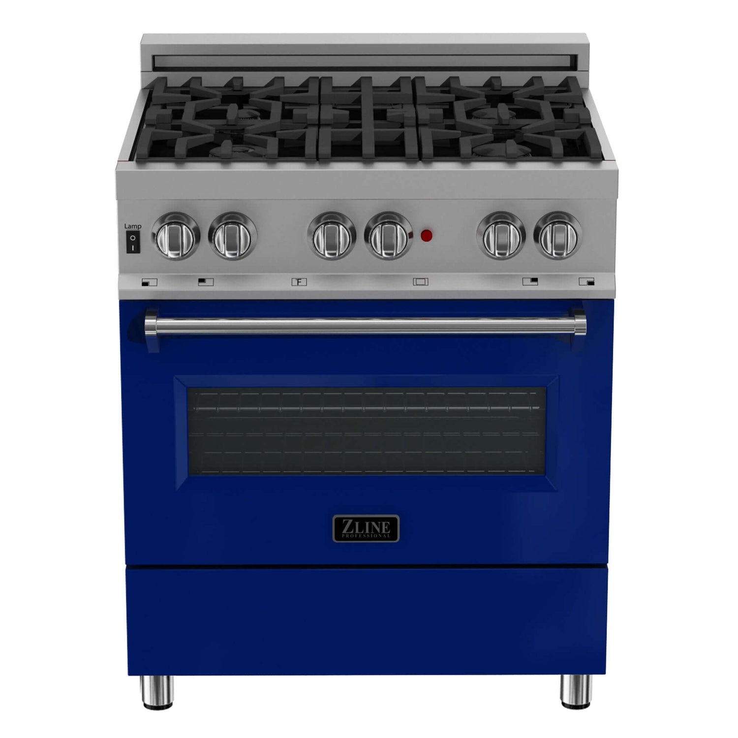 ZLINE 30" Dual Fuel Range in Blue Gloss and Stainless Steel (RAS-BG-30)