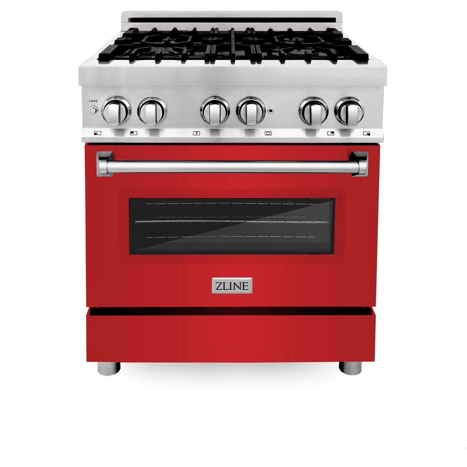 • ZLINE 4.0 cu. ft. Dual Fuel Range with Gas Stove and Electric Oven in Stainless Steel with Red Matte Door (RA-RM-30)