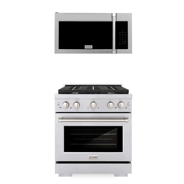 ZLINE 30 in. Kitchen Package Stainless Steel Gas Range and Over The Range Microwave with Traditional Handle (2KP-SGROTRH30)
