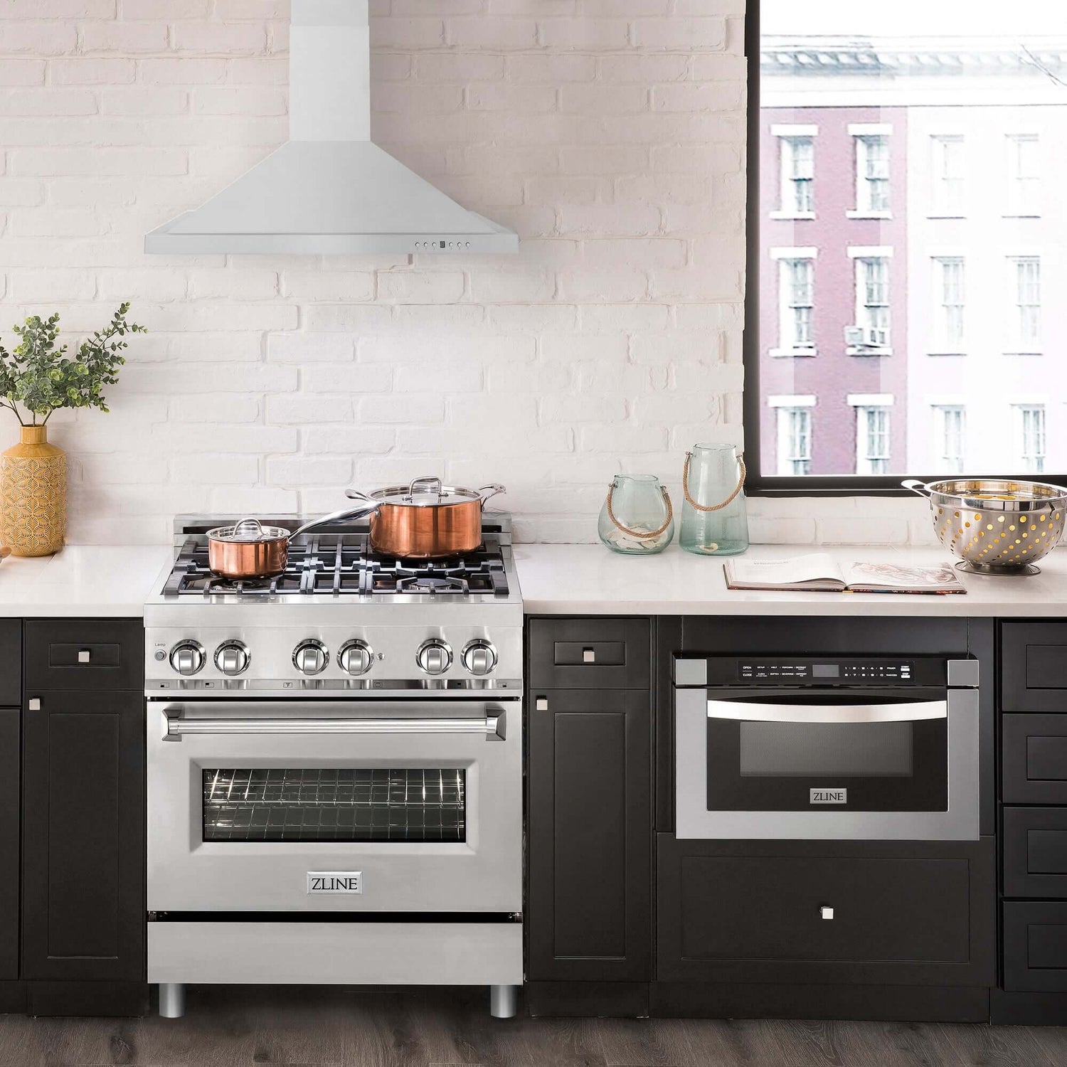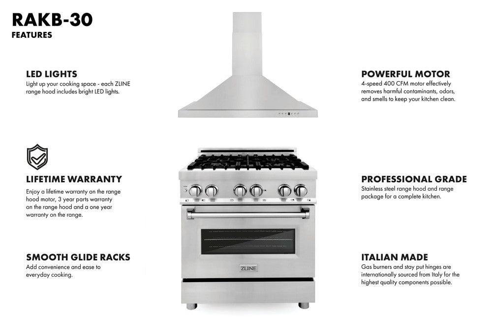 ZLINE 30 in. Kitchen Package with Stainless Steel Dual Fuel Range and Convertible Vent Range Hood (2KP-RARH30)