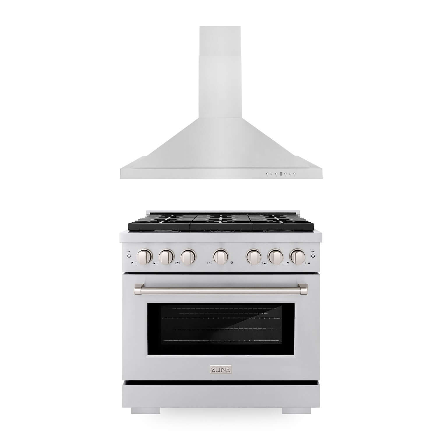 ZLINE 36 in. Kitchen Package with Stainless Steel Gas Range and Convertible Vent Range Hood (2KP-SGRRH36)