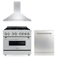 ZLINE 36 in. Kitchen Package with Stainless Steel Dual Fuel Range, Convertible Vent Range Hood and Dishwasher (3KP-RARH36-DW)