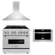 ZLINE 36 in. Kitchen Package with Stainless Steel Dual Fuel Range, Convertible Vent Range Hood and Microwave Drawer (3KP-RARH36-MW)