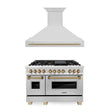 ZLINE 48 in. Autograph Edition Kitchen Package with Stainless Steel Dual Fuel Range and Range Hood with Champagne Bronze Accents (2AKP-RARH48-CB)