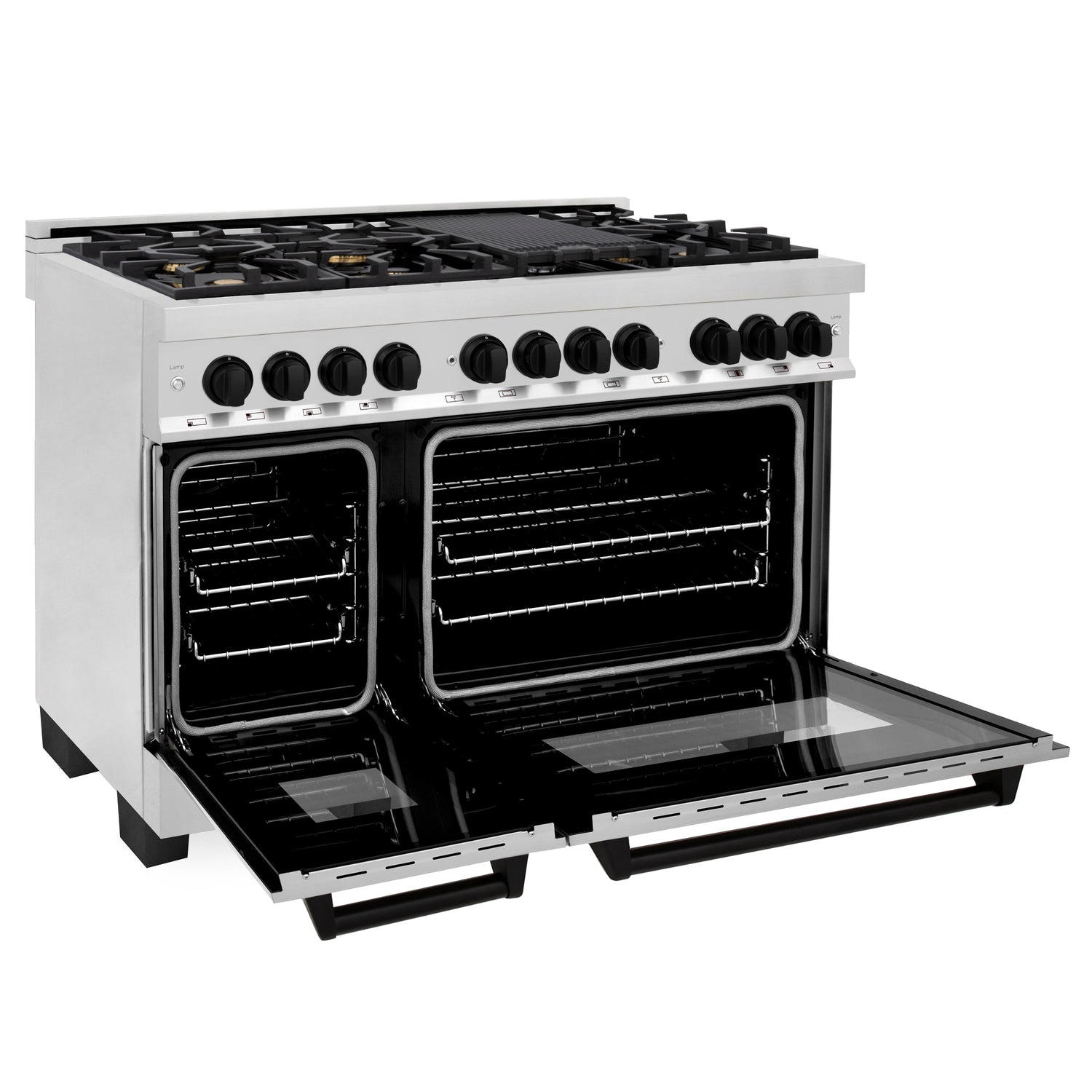 ZLINE 48 in. Autograph Edition Kitchen Package with Stainless Steel Dual Fuel Range and Range Hood with Matte Black Accents (2AKP-RARH48-MB)