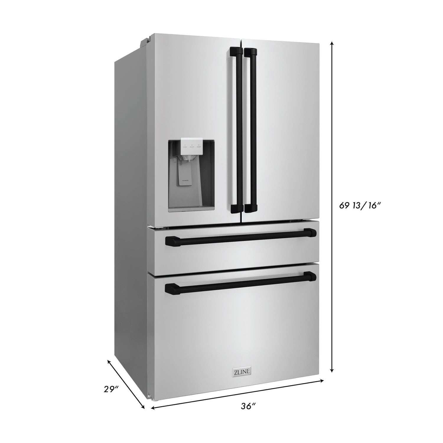 - ZLINE 36 in. Autograph Edition 22.5 cu. ft Freestanding French Door Refrigerator with Ice Maker in Fingerprint Resistant Stainless Steel with Accents (RFMZ-36-MB)