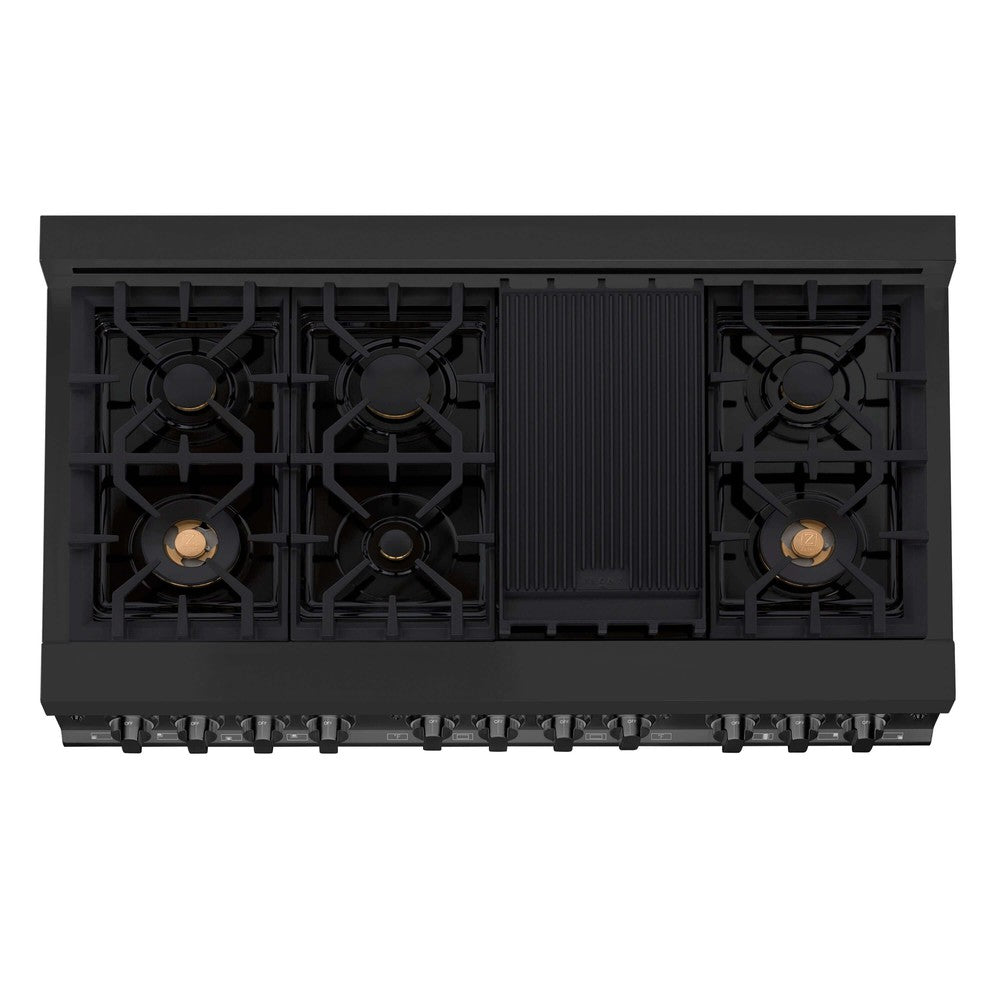 - ZLINE 48" Black Stainless 6.0 cu. ft. 7 Gas Burner/Electric Oven Range (RAB-BR-48)