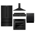 ZLINE Kitchen Package with Refrigeration, 48 in. Black Stainless Steel Gas Rangetop, 48 in. Convertible Vent Range Hood, 30 in. Single Wall Oven, and 24 in. Tall Tub Dishwasher (5KPR-RTBRH48-AWSDWV)