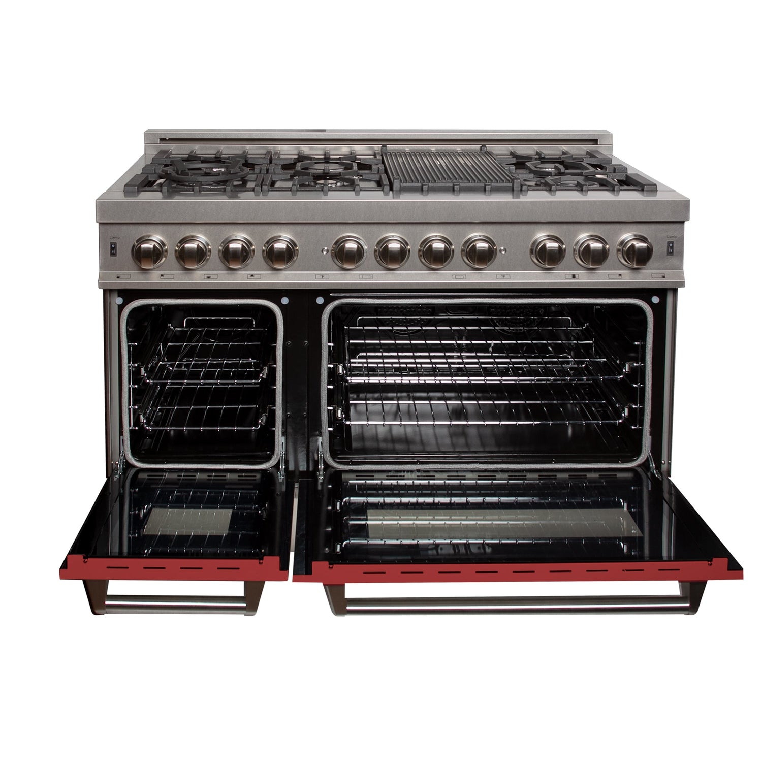 ZLINE 48 in. Kitchen Package with DuraSnow Stainless Steel Dual Fuel Range with Red Matte Door and Convertible Vent Range Hood (2KP-RASRMRH48)