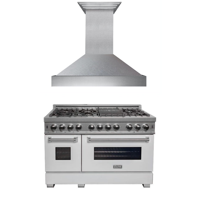 ZLINE 48 in. Kitchen Package with DuraSnow Stainless Steel Dual Fuel Range with White Matte Door and Convertible Vent Range Hood (2KP-RASWMRH48)