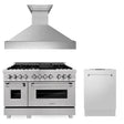 ZLINE 48 in. Kitchen Package with DuraSnow Stainless Dual Fuel Range, Ducted Vent Range Hood and Dishwasher (3KP-RASRH48-DW)