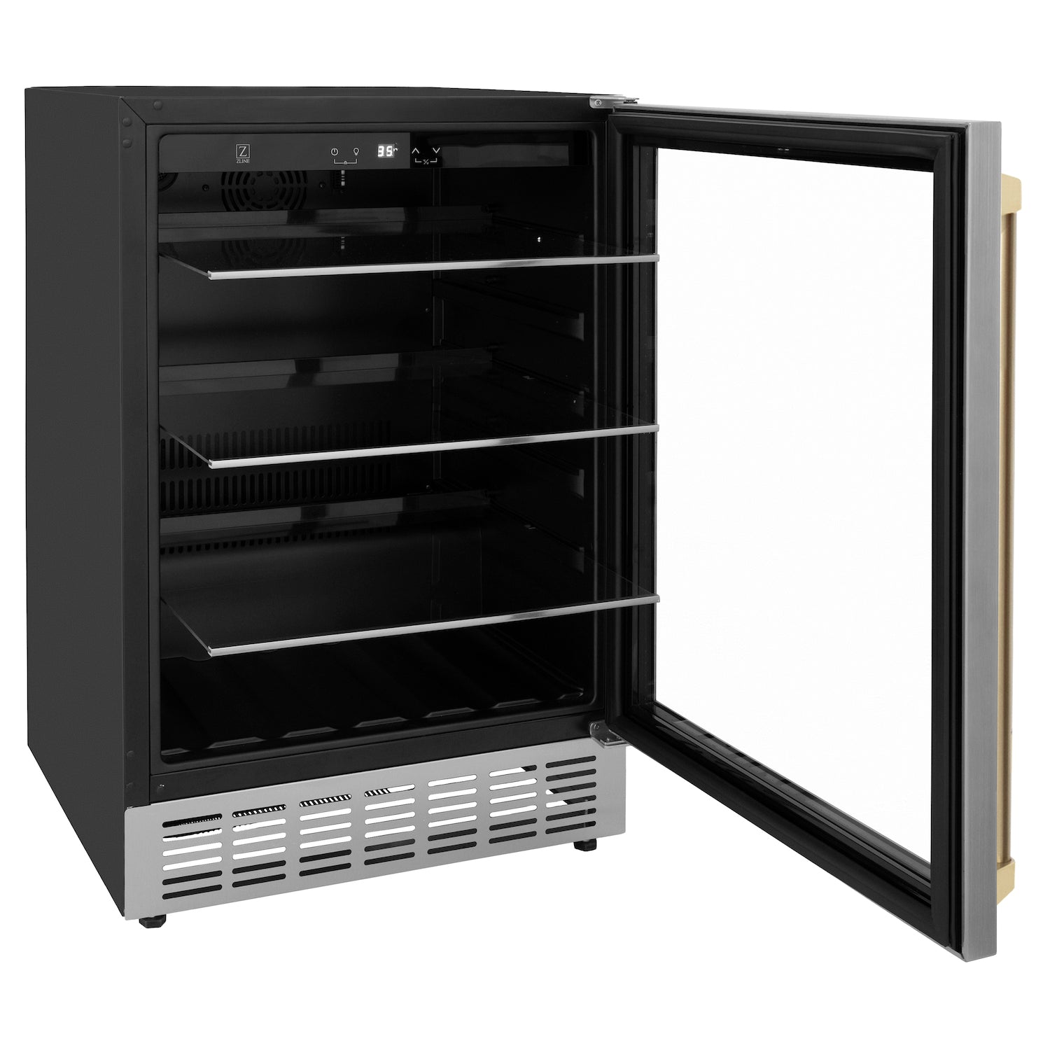 ZLINE 24 in. Monument Autograph Edition 154 Can Beverage Fridge in Stainless Steel with Champagne Bronze Accents (RBVZ-US-24-CB)