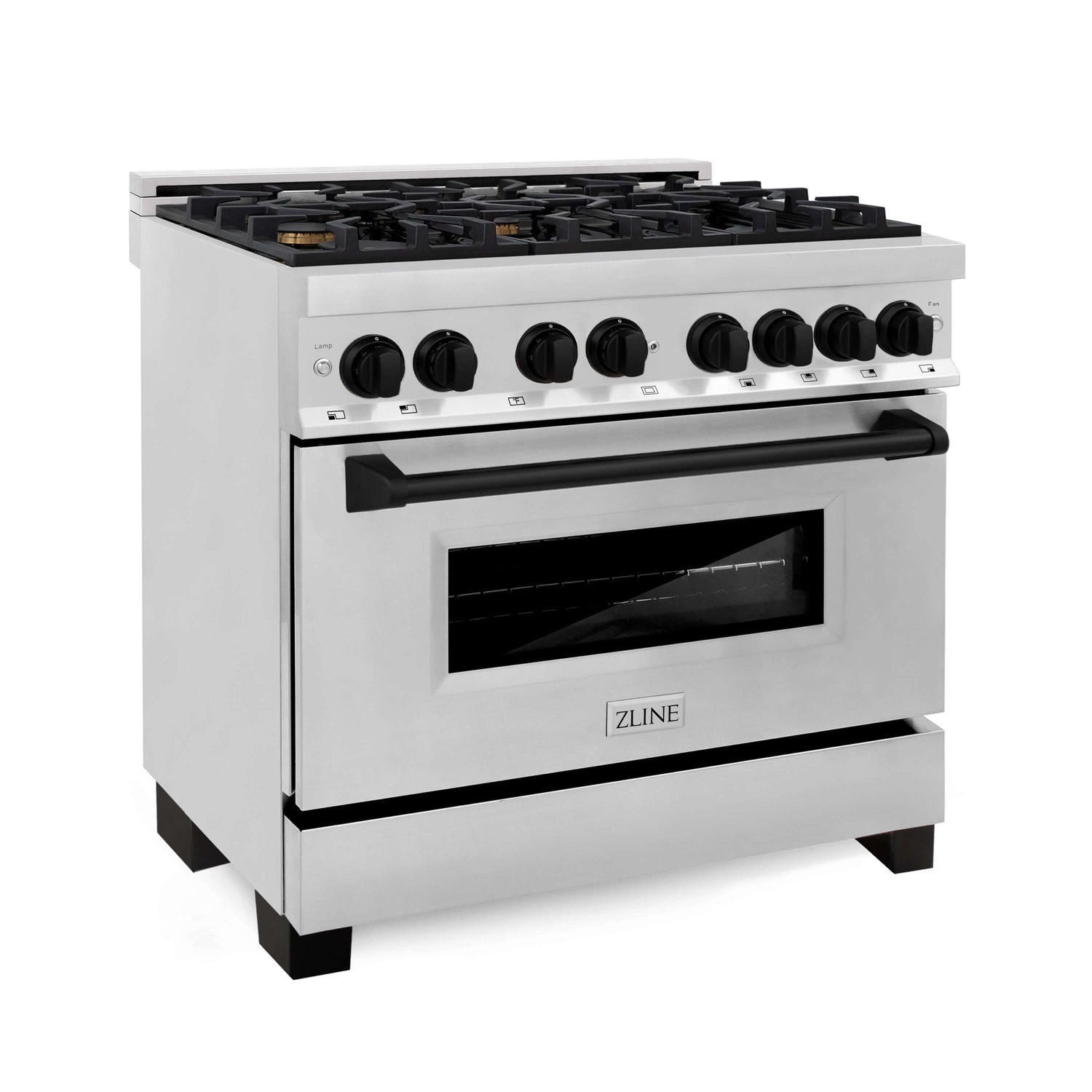 - ZLINE Autograph Edition 36 in. 4.6 cu. ft. Dual Fuel Range with Gas Stove and Electric Oven in Stainless Steel with Accents (RAZ-36-MB)