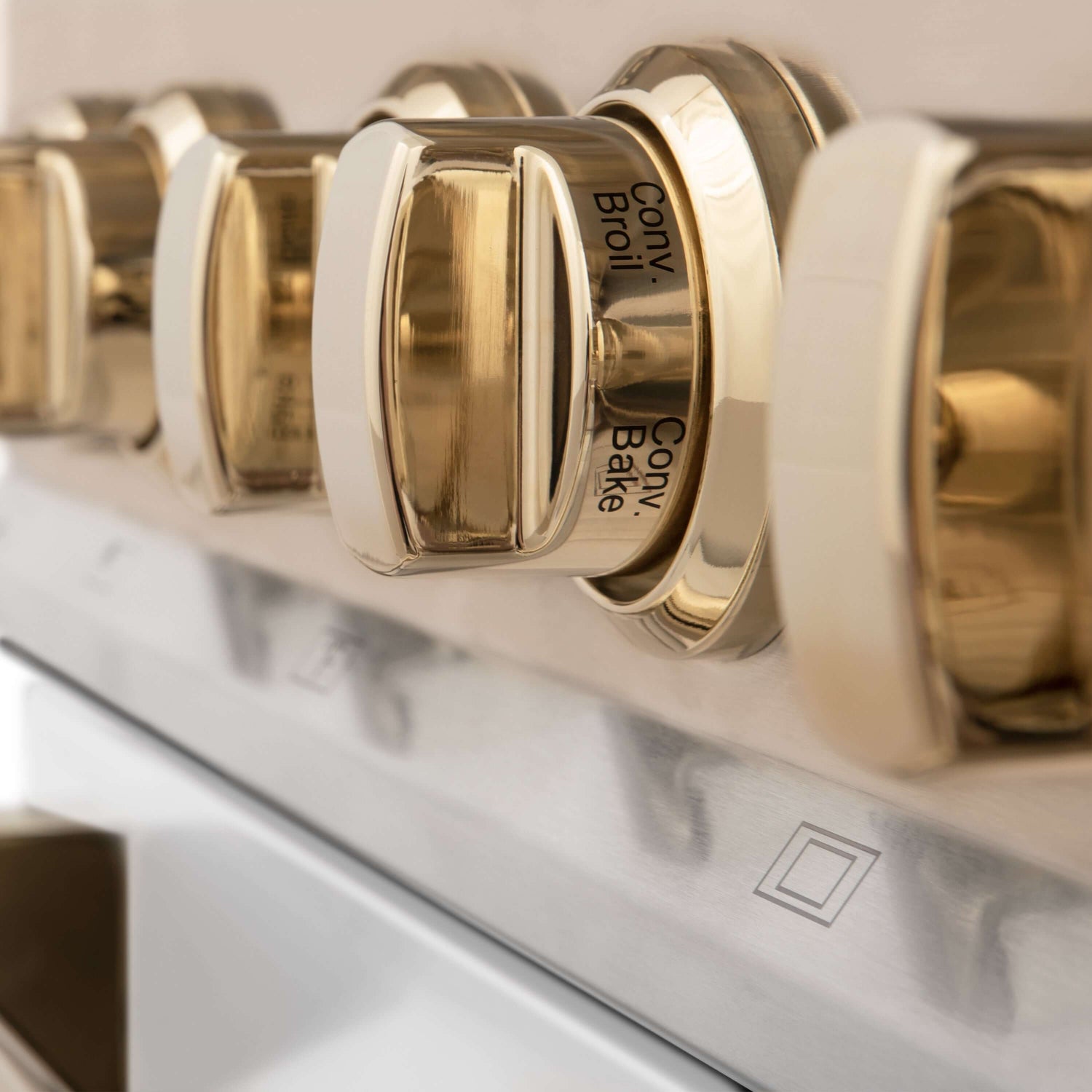• ZLINE’s Italian brass burners give this range an elevated, timeless pop of color while providing enhanced cooking benefits such as superior heat retention and even flame distribution.