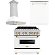 ZLINE 36 in. Autograph Edition Kitchen Package with Stainless Steel Dual Fuel Range with White Matte Door, Range Hood and Dishwasher with Polished Gold Accents (3AKP-RAWMRHDWM36-G)