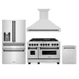 ZLINE 48 in. Autograph Edition Kitchen Package with Stainless Steel Dual Fuel Range, Range Hood, Dishwasher and Refrigeration Including External Water Dispenser with Matte Black Accents (4AKPR-RARHDWM48-MB)