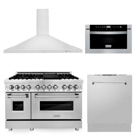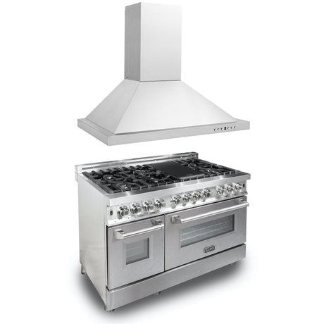 ZLINE Kitchen Package with 48 in. Stainless Steel Rangetop and 48 in. Single Wall Oven (2KP-RTAWS48)