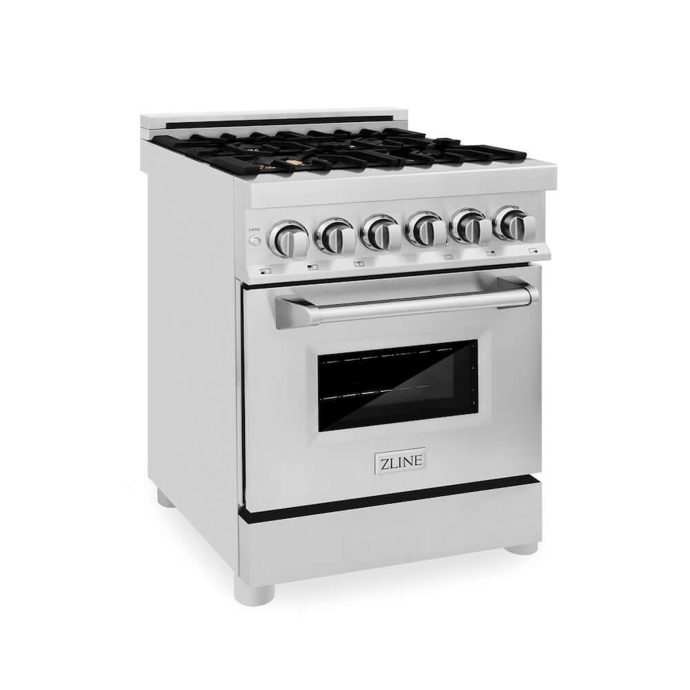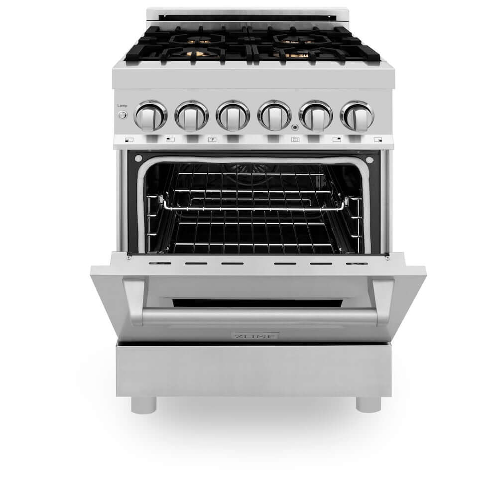 ZLINE 24 in. 2.8 cu. ft. Dual Fuel Range with Gas Stove and Electric Oven in Stainless Steel with Brass Burners (RA-BR-24)