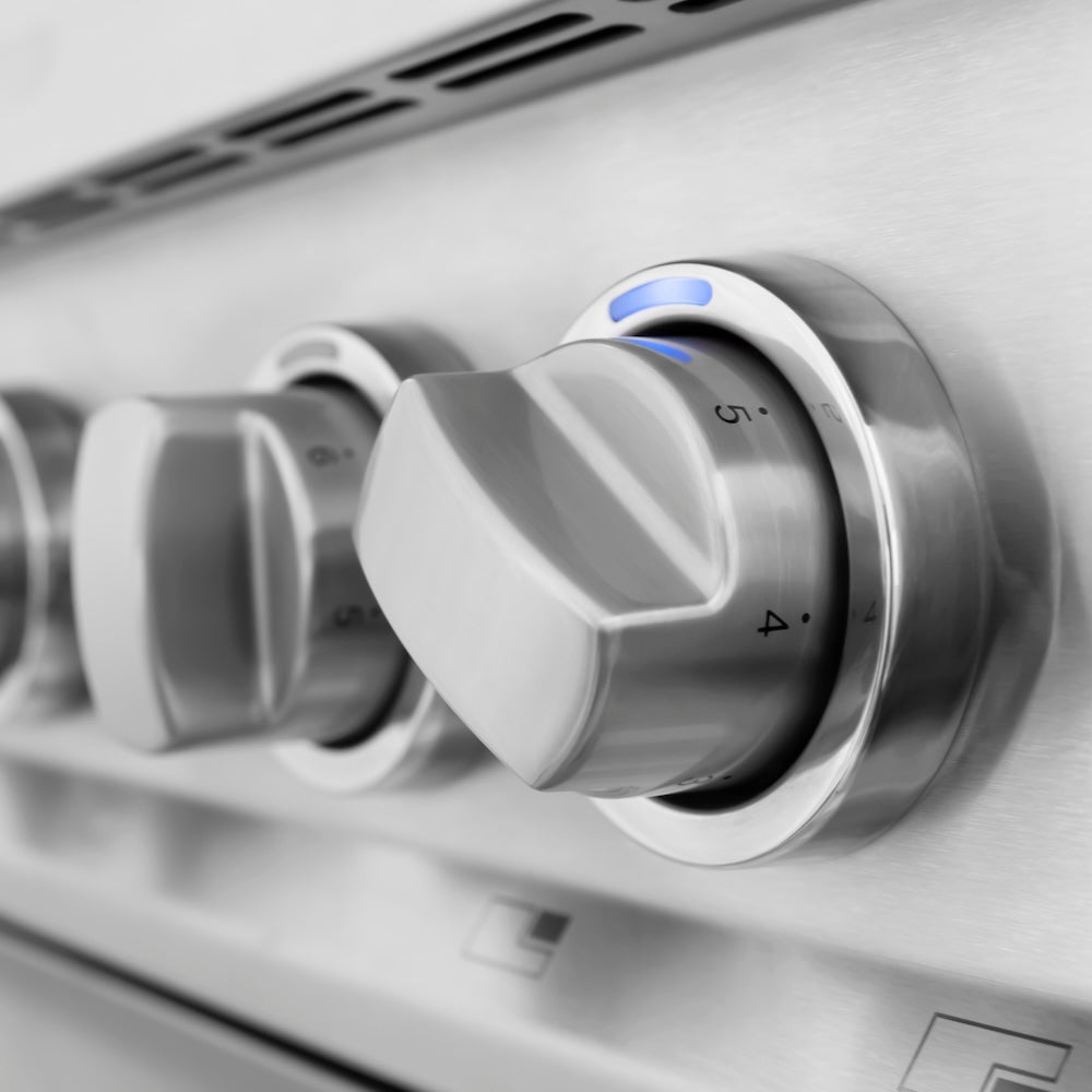 - LED Knob Indicators - Front control knobs will illuminate when the cooktop or oven is in use, providing additional safety and convenience