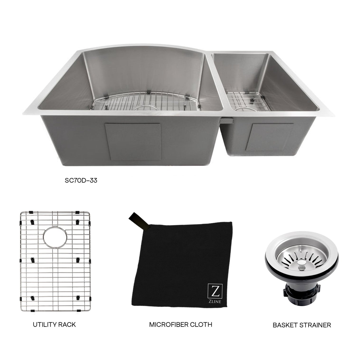 ZLINE 33 in. Cortina Undermount Double Bowl Kitchen Sink with Bottom Grid (SC70D)