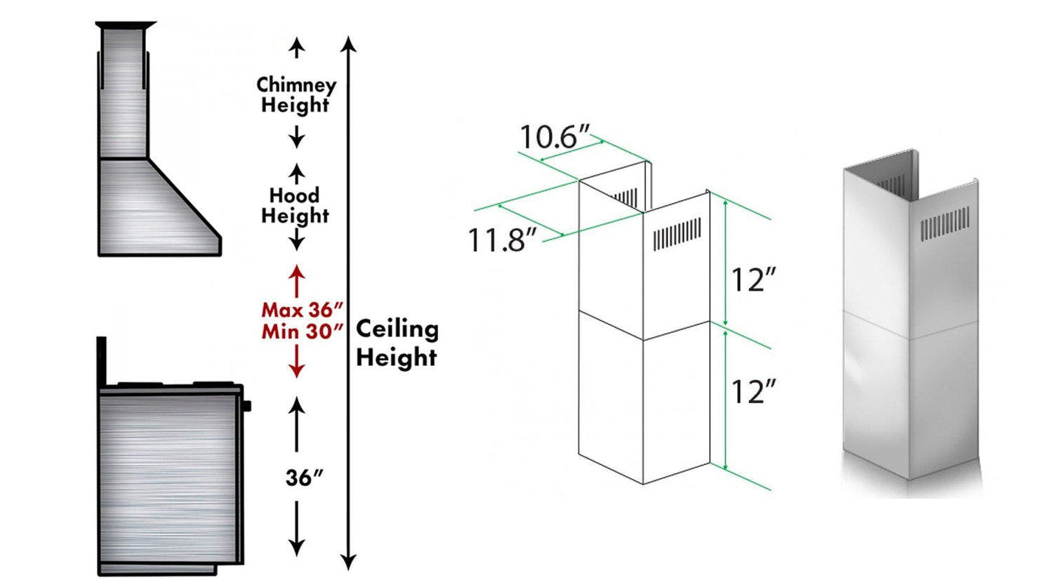 ZLINE 2-12 in. Short Chimney Pieces for 7.7 ft. to 8 ft. Ceilings (SK-587/597)