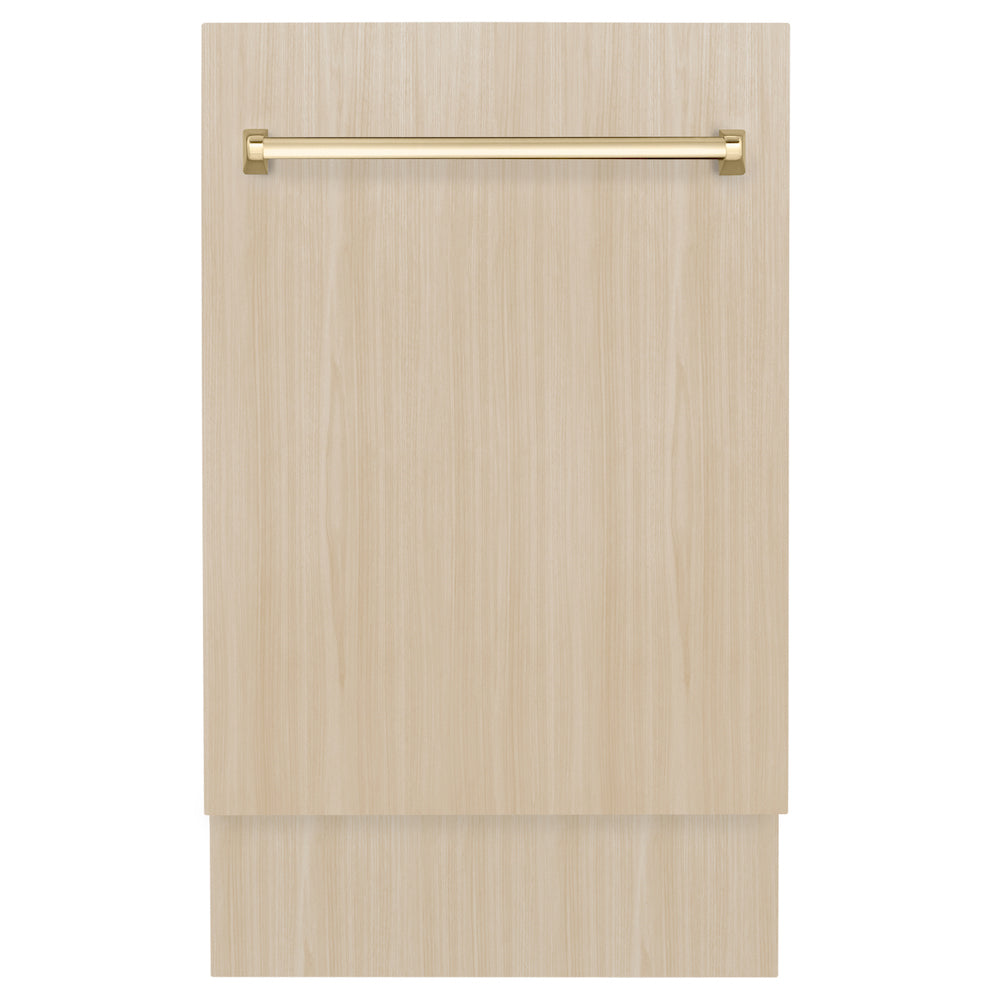 ZLINE Autograph Edition 18 in. Tallac Series 3rd Rack Top Control Dishwasher in Custom Panel Ready with Polished Gold Handle, 51dBa (DWVZ-18-G)