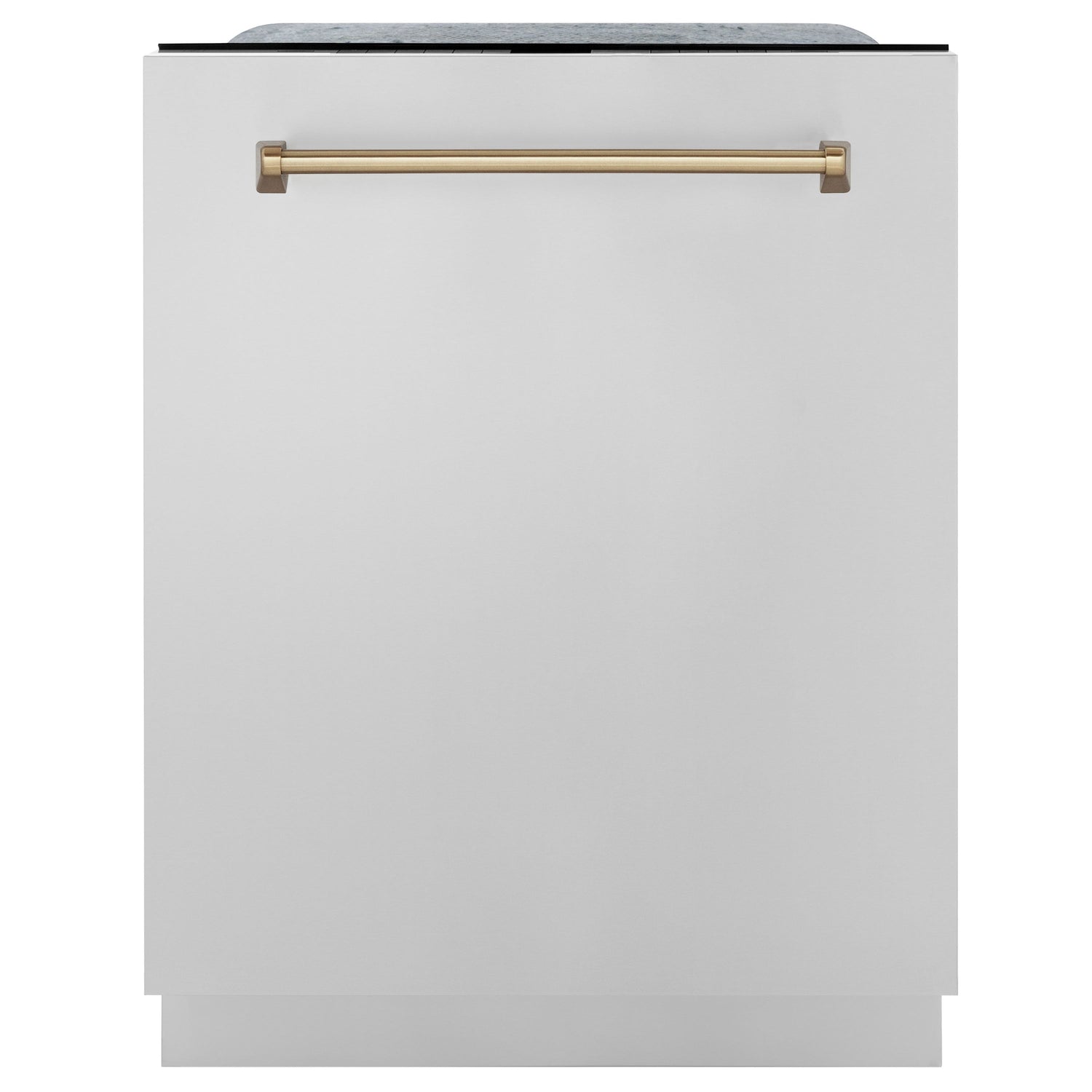 ZLINE Autograph Edition 24 in. 3rd Rack Top Touch Control Tall Tub Dishwasher in Stainless Steel with Champagne Bronze Handle, 45dBa (DWMTZ-304-24-CB)