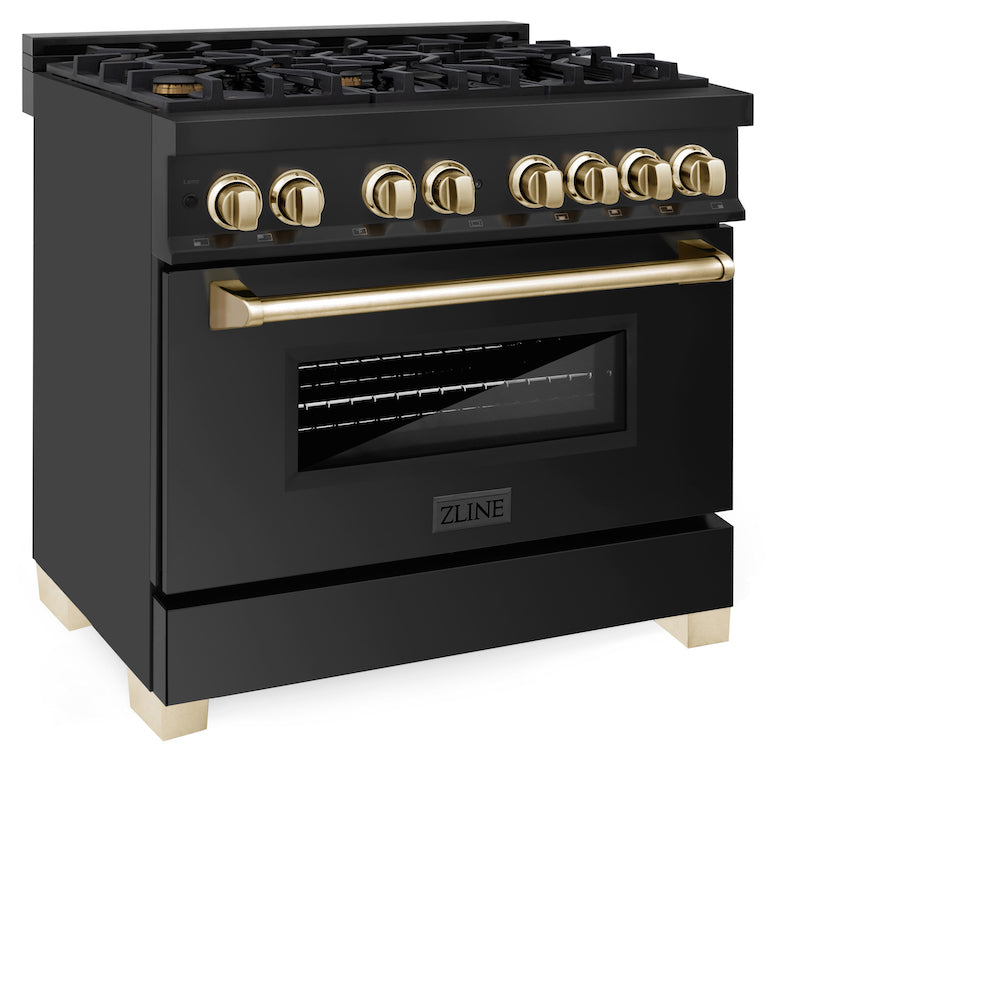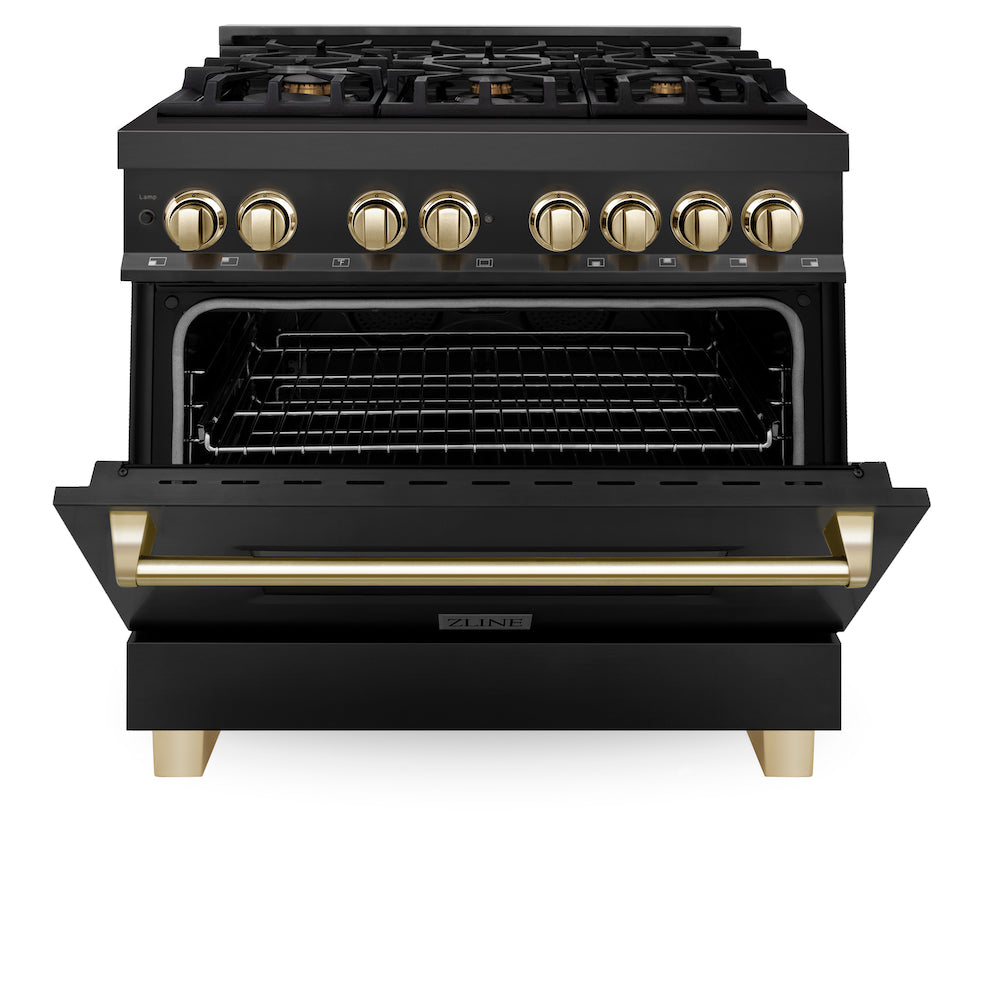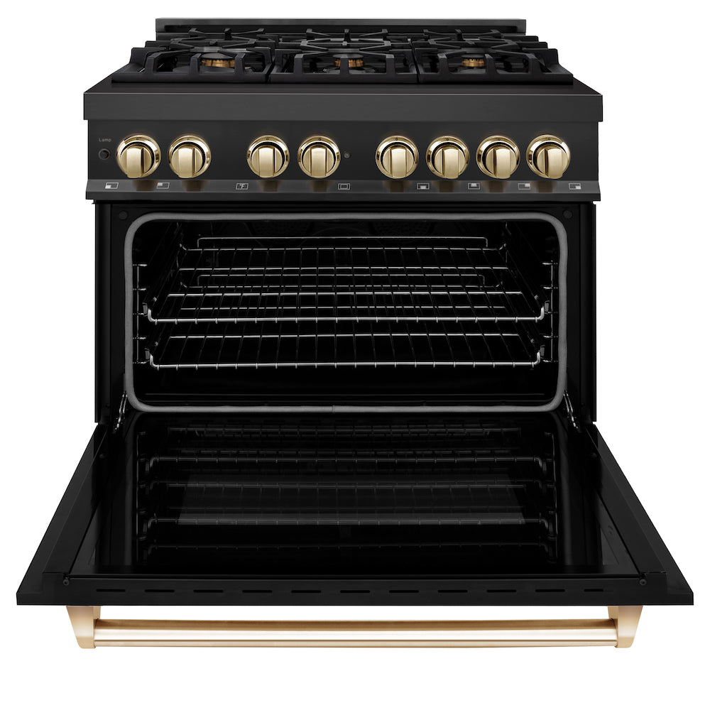 ZLINE Autograph Edition 36 in. 4.6 cu. ft. Dual Fuel Range with Gas Stove and Electric Oven in Black Stainless Steel with Polished Gold Accents (RABZ-36-G)