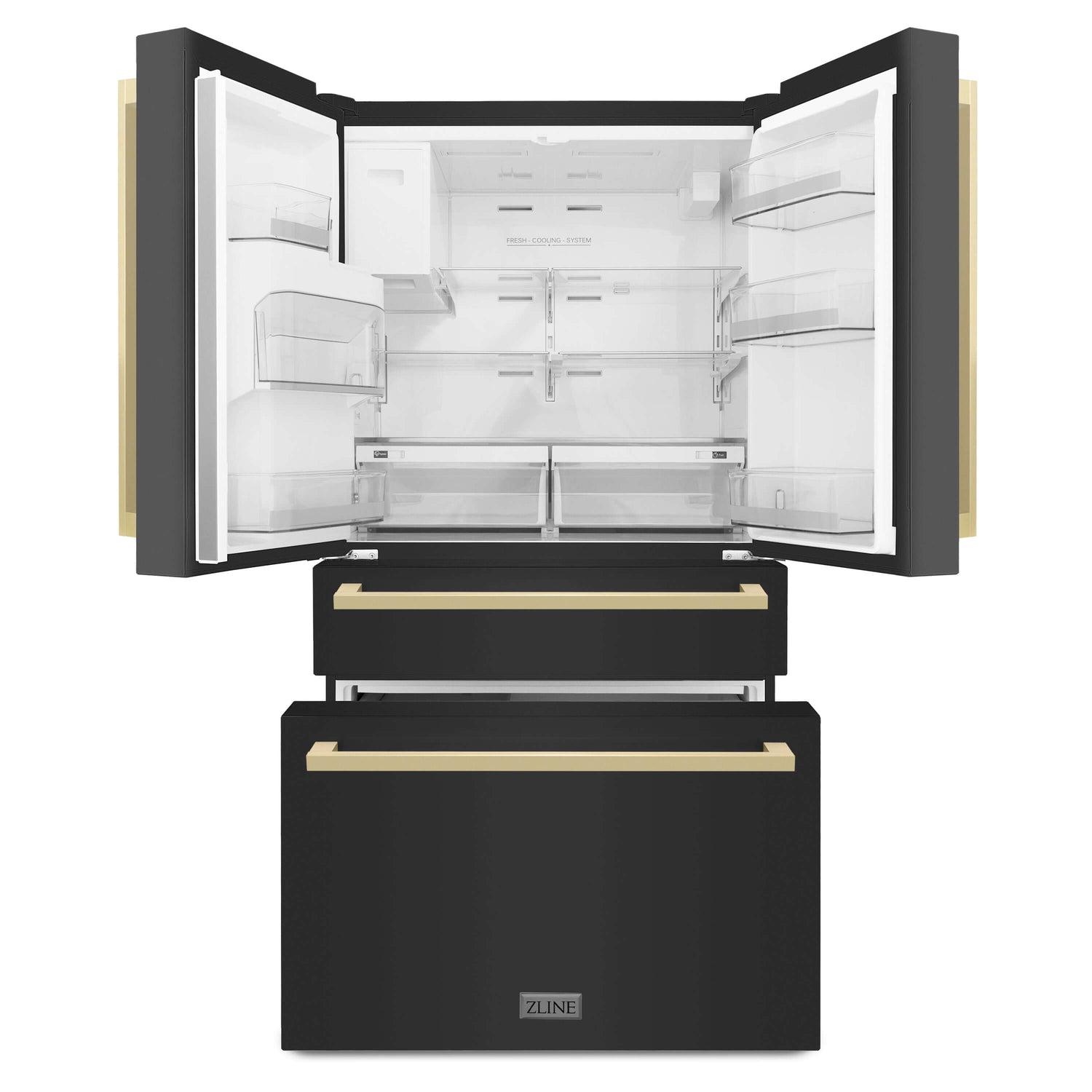 Luxury isn’t meant to be desired - it’s meant to be attainable. Designed in Lake Tahoe, USA, the ZLINE 36" Autograph Edition 21.6 cu. ft 4-Door French Door Refrigerator with Water and Ice Dispenser in Black Stainless Steel with Champagne Bronze Square Handles (RFMZ-W36-BS-FCB) provides a professional culinary experience by pairing unmatched performance with personalized touches. Encompassing limitless beauty, precision, and quality, the Autograph Edition Series creates a luxury look that will transform your space. Achieve ZLINE Attainable Luxury excellence with innovative features designed to enhance your kitchen’s capability.